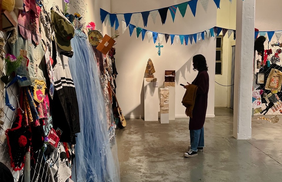 En “la difunta”. Blas ha visitado esta emergencia popular anteriormente asociándola con otro lugar de ese amor: “el Diego”. Berni, en definitiva, apareciendo desde su Difunta a través de la reversión de Blas. Quien, por otro lado, la comparte invitando a una gran cantidad de artistas a sumar exvotos para este santuario (el arte también se coloca en ese espacio de afecciones) que tiene su sede (provisoria) en el macro.
