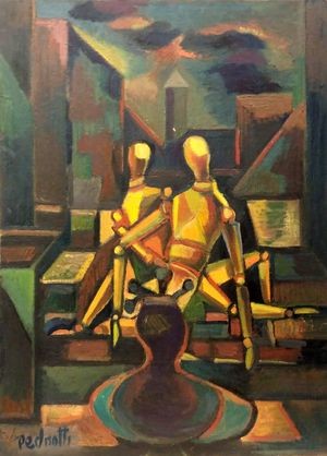 En los años 50 integró el Grupo Litoral, del cual fue miembro fundador, aunque tuvo una participación moderada hasta su disolución. En estos años Pedrotti fue despojando poco a poco su obra de lo sensible y fue otorgándole mayor racionalidad al sumarle una lógica interna: colores, planos y líneas construyen estructuras que sostienen la imagen. Tal es el caso de la obra que nos ocupa, que describe el barrio de la zona norte de Rosario.