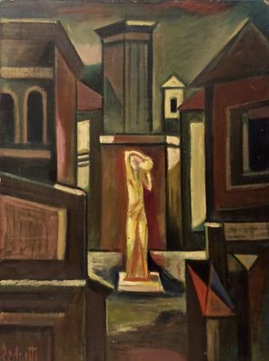 En contadas ocasiones realizó paisajes de su ciudad, este es uno de esos casos, en donde el detalle acentúa su intención descriptiva. El artista no soslaya tampoco la construcción geométrica que caracterizará cada vez mas sus composiciones. La obra ingresó al museo en 1949, donada por el gobierno de la ciudad.