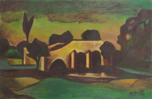 En los años 50 integró el Grupo Litoral, del cual fue miembro fundador, aunque tuvo una participación moderada hasta su disolución. En estos años Pedrotti fue despojando poco a poco su obra de lo sensible y fue otorgándole mayor racionalidad al sumarle una lógica interna: colores, planos y líneas construyen estructuras que sostienen la imagen. Tal es el caso de la obra que nos ocupa, que describe el barrio de la zona norte de Rosario.