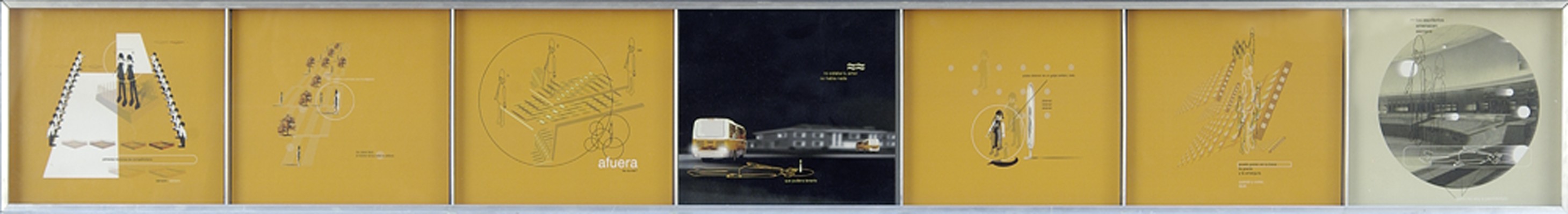 Esta obra pertenece a la instalación Buró escolar, que el artista presenta en el ICI (Instituto de Cooperación Iberoamericana), en el año 2000. En este caso, Carballo presenta 7 de las 14 ilustraciones del manual “Buró escolar”. En cada una de estas páginas del manual aparece una extraña conjugación entre la síntesis propia de sus esquemas y la cuota de sensibilidad emergente de una estética ambiguamente pulcra. Este rasgo lo conduce a desplazar la nostalgia de los lugares comunes, por lo cual, las imágenes terminan siendo ciertamente amenazantes, en tanto quedan provistas de un clima de extrañeza que colocan al artista al margen de las supuestas ortodoxias de los medios que emplea.