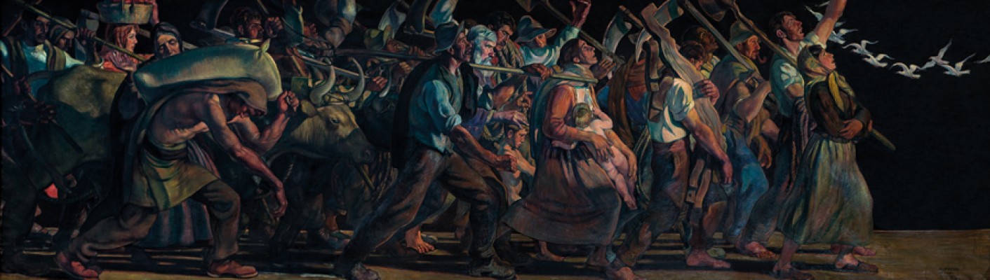 impulso inicial en la década del veinte y en relación con eventos propiciados por la Federación Agraria; que en los años cuarenta, durante la gestión de Hilarión Hernández Larguía como director, adquirió un nuevo contexto de recepción y que hoy, en 2017, vuelve a estar en el centro de atención dado su reubicación temporaria en una sala y mostrando la primera etapa de una restauración compleja que implica tareas a futuro.