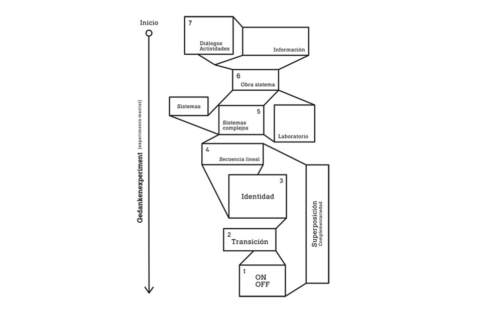 En este contexto de diálogo, las obras se conciben como sistemas físicos (obras/sistemas), aislados o en interrelación mutua, mientras que el espectador juega el rol de observador activo interactuando con el experimento (observador/espectador).