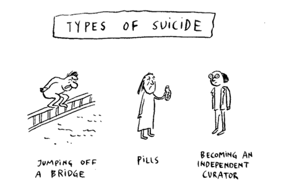 “La curaduría como speed-dating” responde al apabullante interés que existe hoy por la curaduría. El curador está de moda desde hace ya algunos años. De hecho, ya ha llegado a la mismísima sección de sociales de revistas como Vogue. ¿A qué se debe esa omnipresencia? Tal vez porque muchas instituciones como la Royal Academy de Londres, el Center for Curatorial Studies de Bard (CCS) en Nueva York, la Fundación De Appel en Ámsterdam y la también neoyorquina Independent Curators International (ICI) vienen ofreciendo cursos que van desde los tres años hasta un fin de semana.