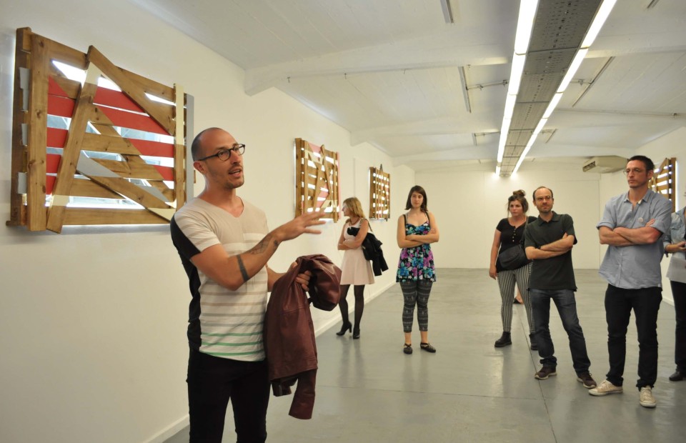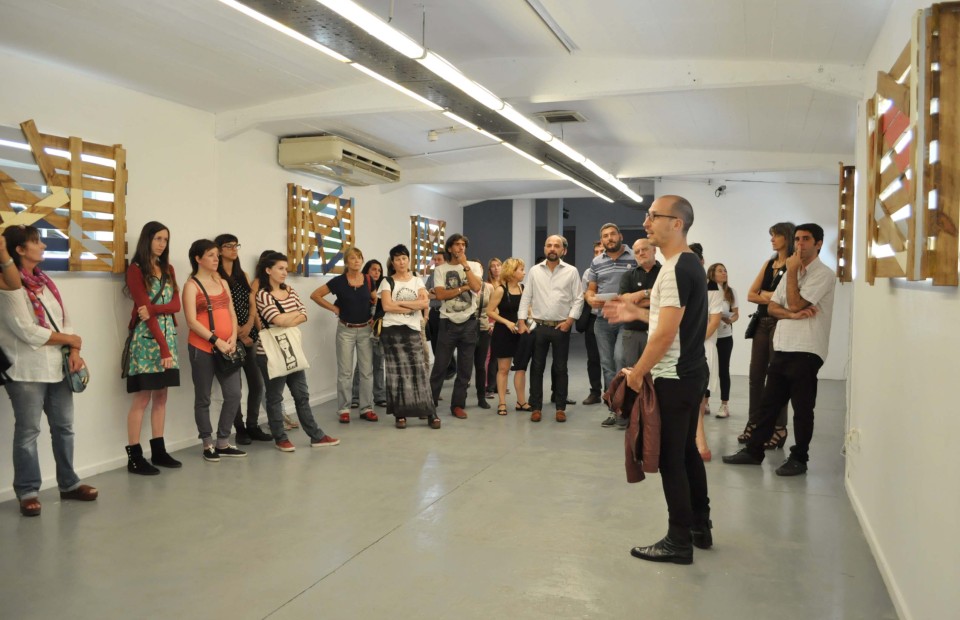 Muestra de Guido Ignatti, resultado del Premio Estímulo de la Fundación Castagnino para artistas emergentes del Salón Nacional Rosario 2013. El cuerpo central de la obra se compone de diez tapiados sobre las ventanas del piso 7 del Macro.