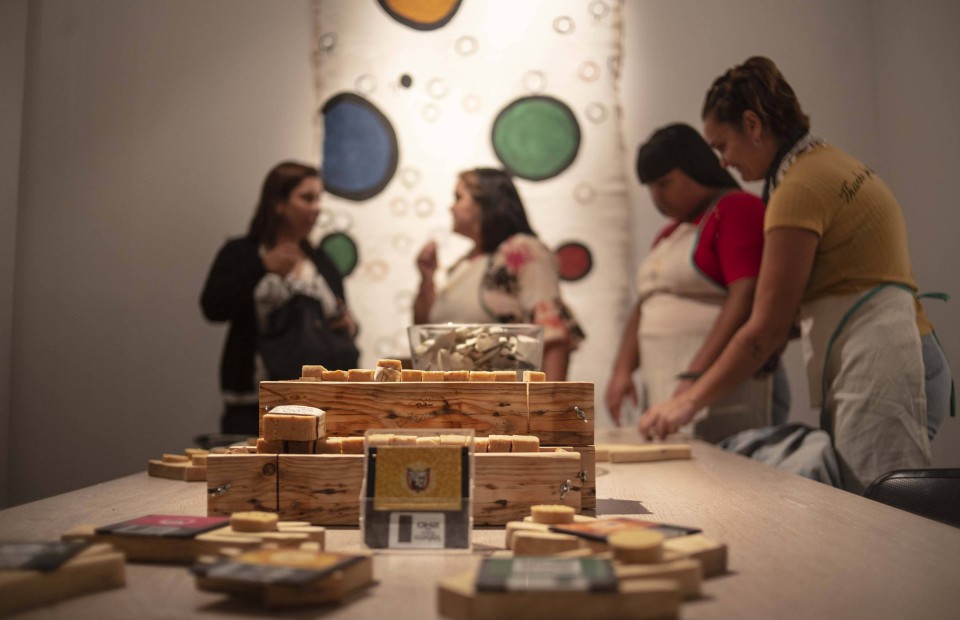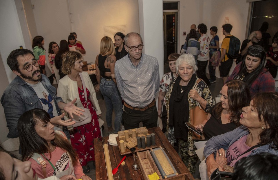 Durante la exposición, E S P U M A instala una jabonería social en funcionamiento continuo dentro del museo, recontextualizando el hacer de un grupo de jaboneras de barrio Tablada.