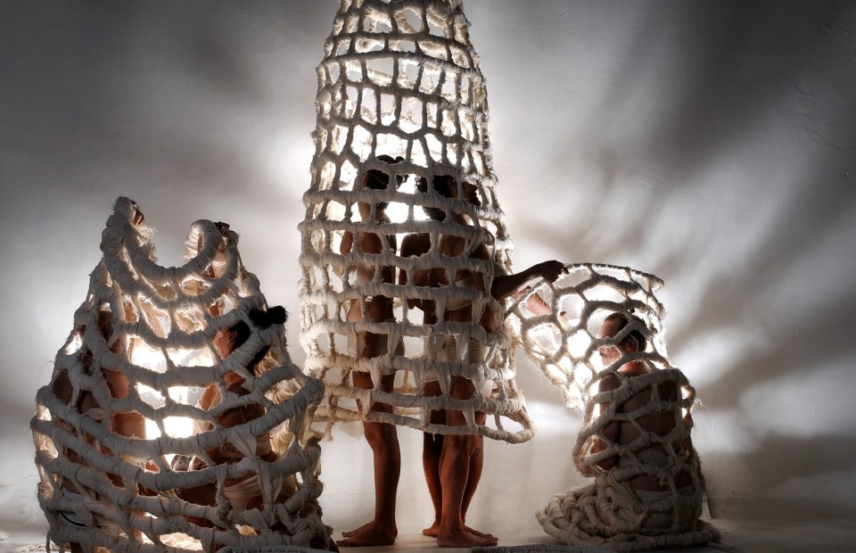 La preocupación por las dimensiones simbólicas del cuerpo en relación al entorno es constante en su producción, desde el barroquismo de colores y texturas de sus piezas/accesorios, pasando por la materialidad vasta de collages y muñecxs realizados grupalmente, hasta la síntesis de sus últimas cesterías que ofician de crisálidas perforadas. En definitiva, es la creación de un lenguaje textil singular lo que posibilita transformaciones en una obra enlazada por una preocupación constante, la de mantener vivo el encuentro entre el arte y la vida.