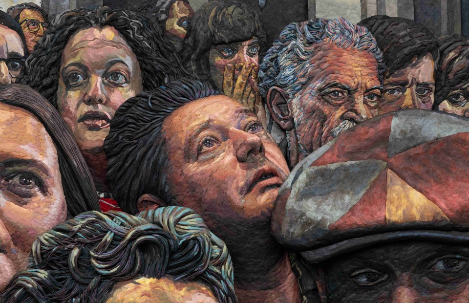 Mondongo, integrado por Juliana Laffitte y Manuel Mendanha, construye imágenes de alto impacto visual y conceptual a partir de materiales no convencionales. Su trabajo reinterpreta el mensaje de Berni desde una perspectiva contemporánea, evocando las luchas sociales actuales y reafirmando la vigencia de aquel grito colectivo que el maestro plasmó en su tiempo.
