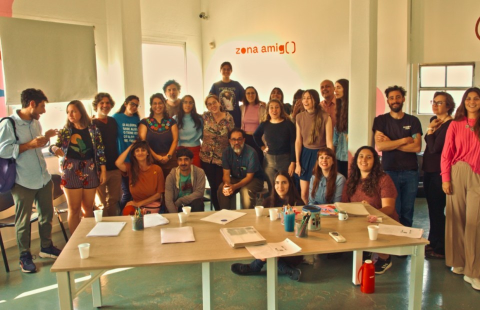 A partir de la exposición “Amig( )s del museo”, que tuvo lugar entre mayo y octubre de 2022, el macro planteó un espacio en el cual los visitantes puedan jugar, reflexionar, contemplar o crear, además de experimentar aspectos propios de los lenguajes y prácticas contemporáneas, y construir junto a otr( )s algunos de los múltiples sentidos que proponen la muestra y sus obras. A ese lugar se lo denominó zona amig( ). Desde ese momento, se comienzan a diseñar y poner en uso dispositivos pensados para romper la lógica de visita canónica a los museos, donde no prime el corte visualista ni los recorridos informativos, sino que se apele a la búsqueda de sentidos por medio del diálogo, con intercambio de saberes y conocimientos, en un ambiente amigable y relajado. La importancia del área creció hasta posibilitar que uno de sus miembros forme parte del Equipo curatorial, para que los aspectos que deriven de las mediaciones sean tenidos en cuenta en la programación y las incorporaciones de obras.