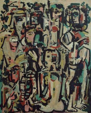 Sobre Abstracción 1958, Eleonora Traficante expresa “la línea antes de ser la inscripción o el contorno que delimita en la superficie de la tela una figura particular no es más que, si así podemos decirlo, una fibra dimensional de espacio. Estas líneas no existen sino para procurarse un campo y su despliegue, el estallido del chorreado que emerge casi como una huella, deja detrás de sí un vacío intensivo, el espacio de su travesía” “La línea es activa de una parte a otra, a todo lo largo de su recorrido, moviliza y cifra el espacio marginal según las inflexiones de su advenir, como una forma automoviente que trazara su propia vía, transformándose a través de su curvatura, de su velocidad, de sus detenciones en la gestación de un espacio y un tiempo únicos. Los elementos cromáticos, en la mayoría de sus obras, exhiben una vibrante y contrastante tensión presente en los colores cálidos y fríos. Aquí las modulaciones de color constituyen un fluido orientado de un lado a otro de la tela por un movimiento de impulsión –y quizás deberíamos hablar de pulsión- de los elementos que deshacen, desde el interior, el instante global de la visión e inducen a una gestualidad, a una deixis corporal que no es otra cosa que el efecto singular, inmediato y puntual de lad fuerzas del color. Todo consistiría en mostrar que el “ver” crea la tela, penetrando de una manera perentoria en la vida extraña, viviente del color” .