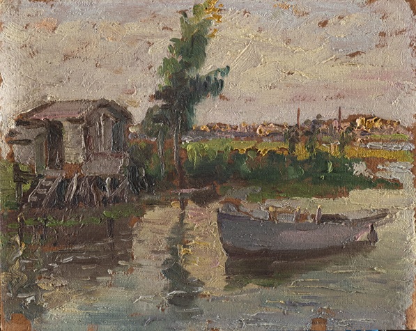 De estos primeros años en Rosario, dos óleos sobre cartón aparentemente pintados al año siguiente de su llegada –han sido fechados en el libro de registro de la colección del Museo Castagnino+macro como de 189015– documentan su trabajo a plein air. Son dos apuntes de vistas de la ciudad desde la bajada Belgrano, cuyas medidas de soporte y técnica pictórica perdurarán en cantidad de bocetos realizados desde esta fecha y durante sus años de actividad posteriores. Estas dos obras de pequeño formato expresan su formación en el lenguaje artístico ottocentista y su persistencia y comunión con las enseñanzas y el espíritu de su formación genovesa.