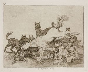 Colección de 37 láminas grabadas por Francisco de Goya y Lucientes correspondientes a la 5ta Edición del Círculo de Bellas Artes de Madrid publicada en 1921. Estampada en la Calcografía Nacional, Madrid. Ejemplar N°199.