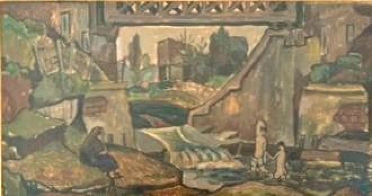 En contadas ocasiones realizó paisajes de su ciudad, este es uno de esos casos, en donde el detalle acentúa su intención descriptiva. El artista no soslaya tampoco la construcción geométrica que caracterizará cada vez mas sus composiciones. La obra ingresó al museo en 1949, donada por el gobierno de la ciudad.