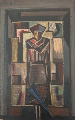 En los años 50 integró el Grupo Litoral, del cual fue miembro fundador, aunque tuvo una participación moderada hasta su disolución. En estos años Pedrotti fue despojando poco a poco su obra de lo sensible y fue otorgándole mayor racionalidad al sumarle una lógica interna: colores, planos y líneas construyen estructuras que sostienen la imagen. Tal es el caso de la obra que nos ocupa, que describe el barrio de la zona norte de Rosario.